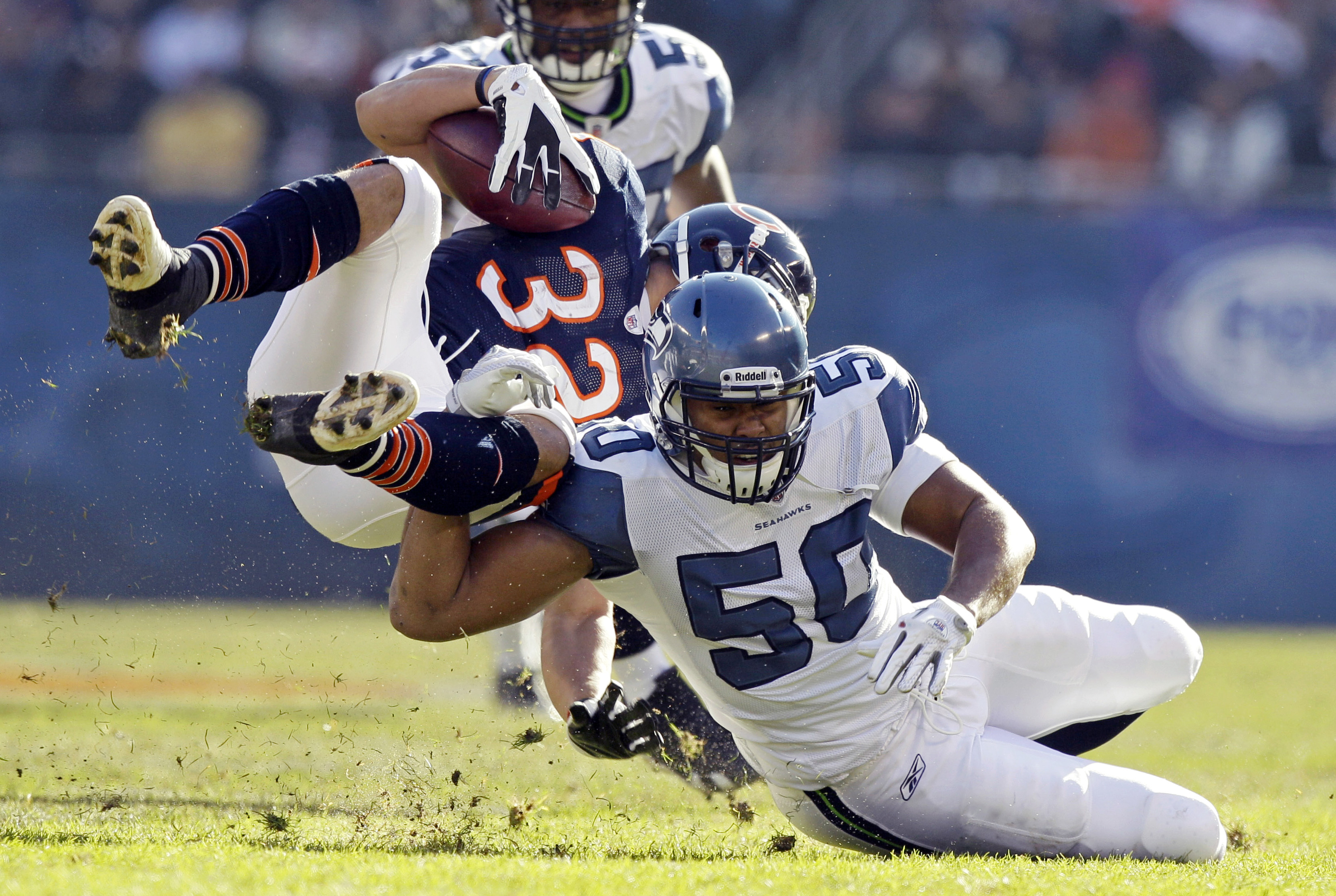 Seahawks linebacker K.J. Wright brings down Bears running back Kahlil Bell during the first half.
