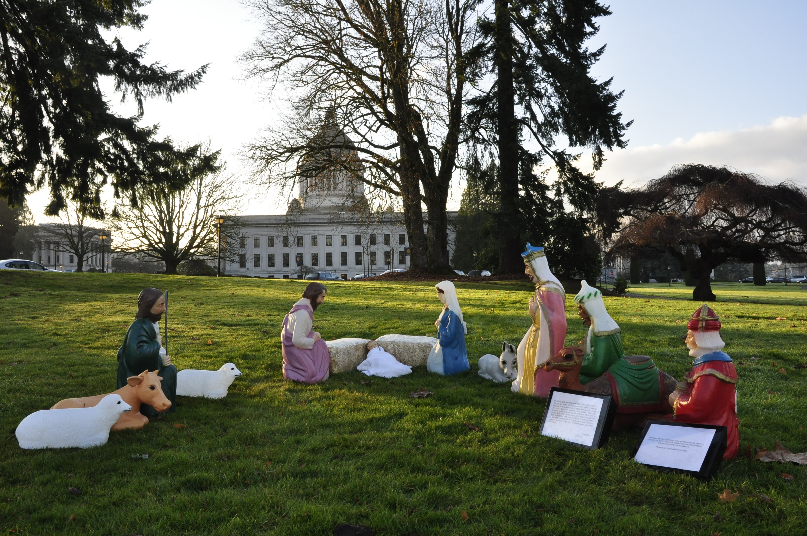 OLYMPIA – Washington state officials granted permits for three groups to put up holiday displays this year – two religious, one atheist – at or near the Capitol Campus, and all are set up apart from each other.