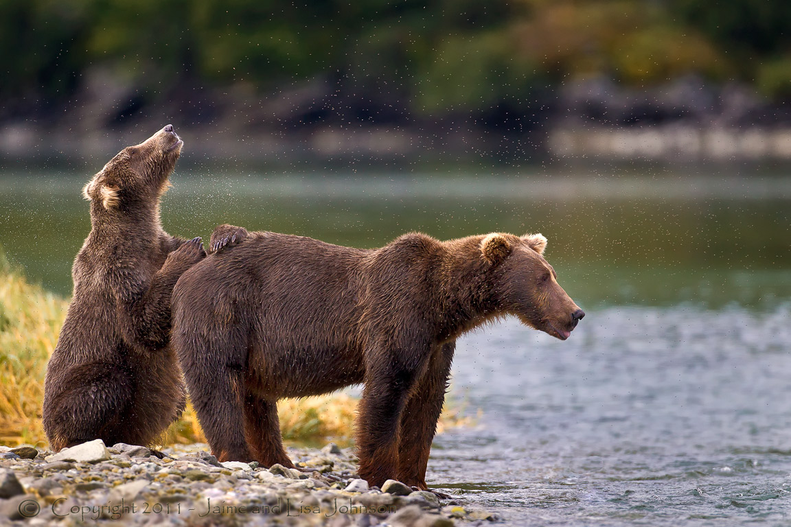 “This 2.5-year-old cub was just happy to hang out with mother while she looked for fish,” he said. ” Whenever mom caught one, she shared with her cub.