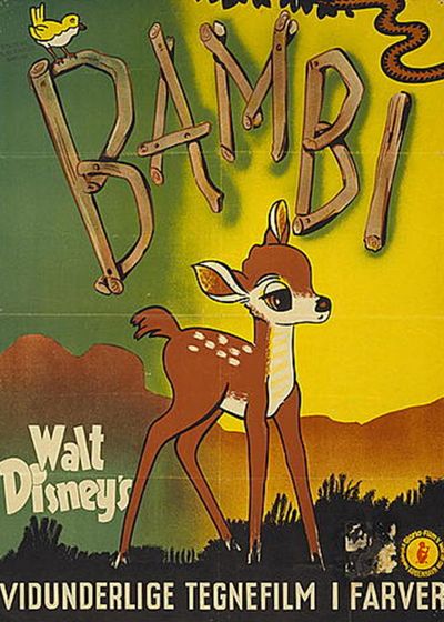 This undated handout image provided by the Library of Congress shows a Danish poster for Walt Disney’s 1942 animated film “Bambi.” Bambi, Forrest Gump and Hannibal Lecter have at least one thing in common: Their cinematic adventures were chosen by the Library of Congress to be preserved in the world’s largest archive of film, TV and sound recordings. (AP Photo/Library of Congress)