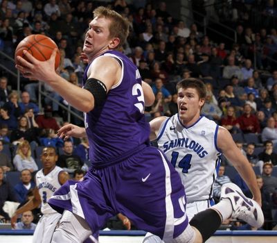 Portland’s Ryan Nicholas, left, reaches for a ball as it goes out of bounds as Saint Louis’ Brian Conklin looks on during the first half of an NCAA college basketball game on Saturday, Dec. 3, in St. Louis, Mo. Nicholas, a former Gonzaga Prep star, has emerged as a top scorer and rebounder for the Pilots. Gonzaga will tipoff another defense of a WCC title tonight when they host Portland. (AP Photo/Jeff Roberson)