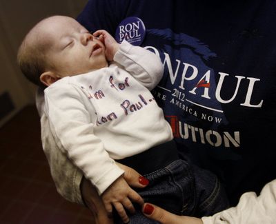 Zach Pederson, 10 months, wears a home-made Ron Paul T-shirt at a campaign stop for Republican presidential candidate Rep. Ron Paul, R-Texas, earlier today in Le Mars, Iowa. You write the cutline. (AP Photo/Eric Gay)