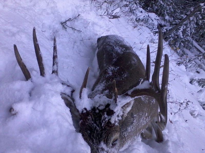 They’re too late for a chance at the bruiser pictured above, taken by Spokane dog trainer Dan Hoke at the edge of a clearcut near Lake Pend Oreille while the rut was still hot and heavy just before the rifle seasons ended.
