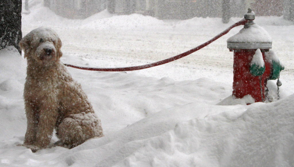 A Dog named Muldoon waits in the snow for its owner, Tess Taylor, who stopped for coffee on Wednesday in Barre, Vt. You write the cutline. (AP Photo/Toby Talbot)