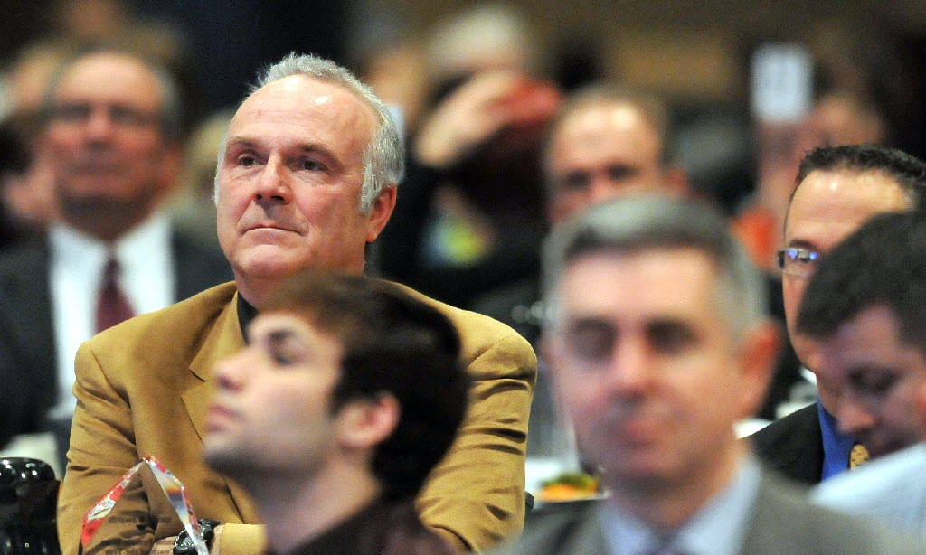 Dale Poffenroth, longtime basketball coach and current Coeur d’Alene girls coach, listens to speakers at the annual Inland Northwest Sports Awards banquet on Wednesday at the Spokane Convention Center. Poffenroth was chosen as the junior female team coach of the year. (SR photo: Jesse Tinsley)