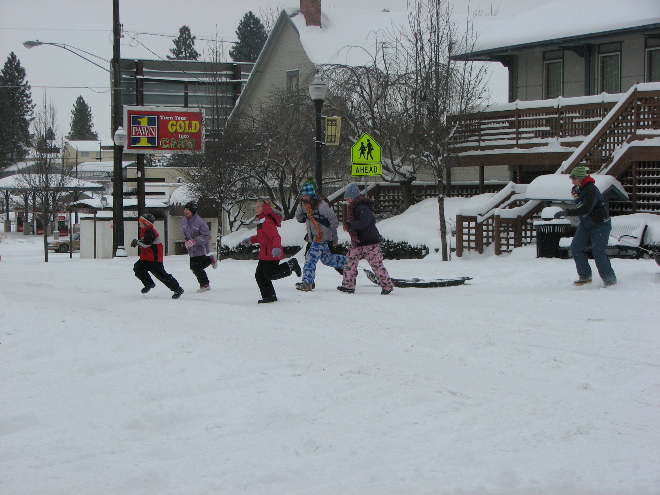 Saw this group of kids crossing Perry Street, headed toward sledding in Grant Park. Looks like they are going to have a really good time on this snow day off.