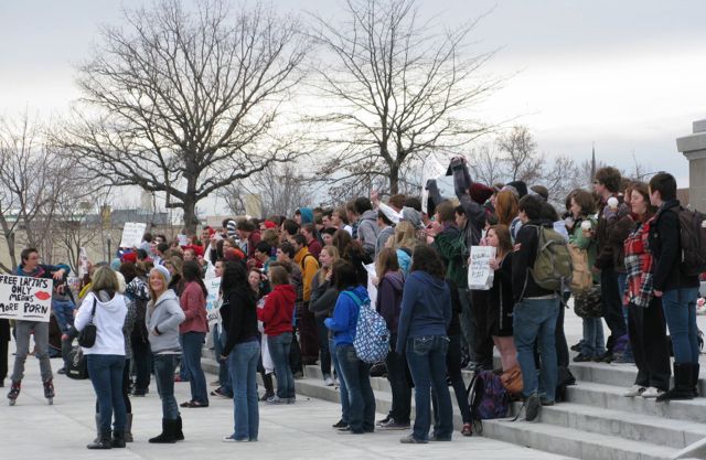 The boisterous students, many from Boise High School, joined others from around southeastern Idaho who skipped class to rail against Superintendent of Public Instruction Tom Luna’s plans. Those include boosting technology in the classroom, requiring students to take online classes, increasing class sizes, cutting 770 teaching jobs and increasing the minimum pay for teachers.