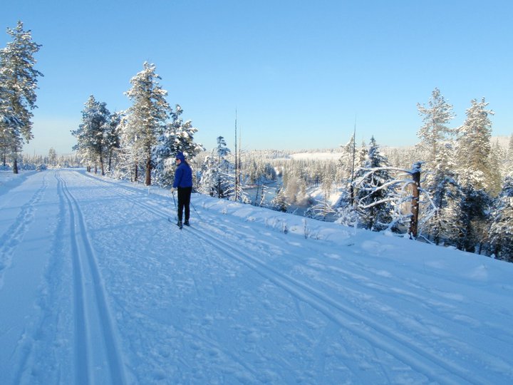 Mike Aho of Spokane Parks and Recreation saw the gift of snow and cold weather coming before the New Year and used a snowmobile to groom tracks and a skating lane on the Centennial Trail in Riverside State Park from Seven Mile to the Bowl and Pitcher overlook.