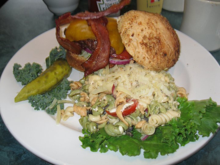 On his Get Out! North Idaho Facebook site, OrangeTV offers the food porn above: One of Fedora’s finest burgers, from the great state of Wisconsin! Served with crispy hickory smoked bacon, aged Wisconsin cheddar cheese, lettuce, tomato, onion, and mayo.”