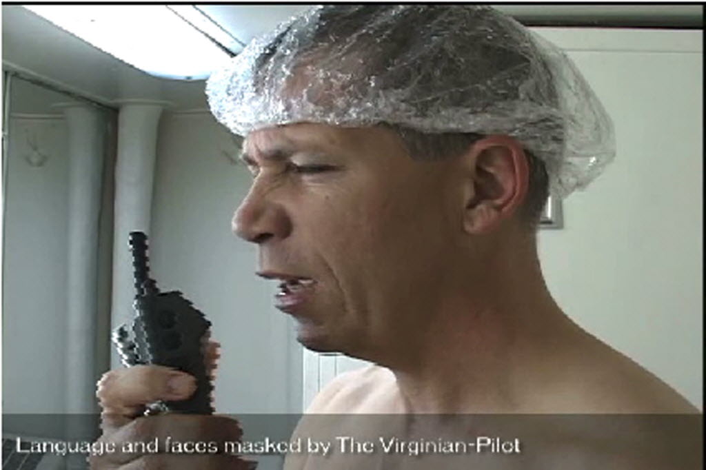 U.S. Navy Capt. Owen Honors appears in one of a series of profanity-laced comedy sketches that were broadcast on the USS Enterprise via closed-circuit television. A top officer aboard a nuclear-powered aircraft carrier broadcast to his crew the series of sketches in which he uses gay slurs, mimics masturbation and opens the shower curtain on women pretending to bathe together, a newspaper reported. The Virginian-Pilot reported in its Sunday editions that Capt. Owen Honors appeared in the videos in 2006 and 2007 while he was the USS Enterprise’s second-ranking officer, and showed them across the ship on closed-circuit television. He took over as the ship’s commander in May. Story here . (AP Photo/The Virginian Pilot)