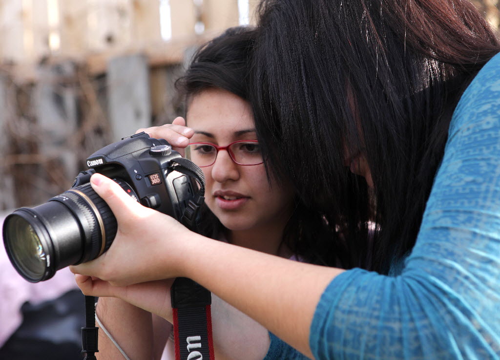 Lupe Cortes, left, a health promoter with the Quincy Community Health Clinic, looks at photos taken by Cristian Ramon as the pair document health issues in their community on March 26 at a trailer park in Quincy, Wash., as part of a project called Photovoice. Shawn Vestal column here . (SR photo: Tyler Tjomsland)