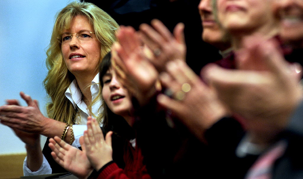 Newly elected Kootenai County commissioner Jai Nelson applauds during the swearing in of her fellow commissioners during the ceremony at the Kootenai County administration building in Coeur d’Alene on Monday. (SR photo: Kathy Plonka)