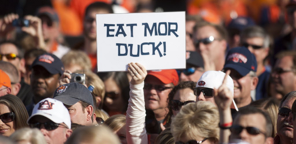 Auburn University fans gather at the Scottsdale Waterfront, Sunday in Scottsdale, Ariz. The Auburn fans were gearing up for the BCS national championship NCAA college football game with Oregon tonight in Glendale, Ariz. (AP Photo/The Arizona Republic, Tom Tingle)