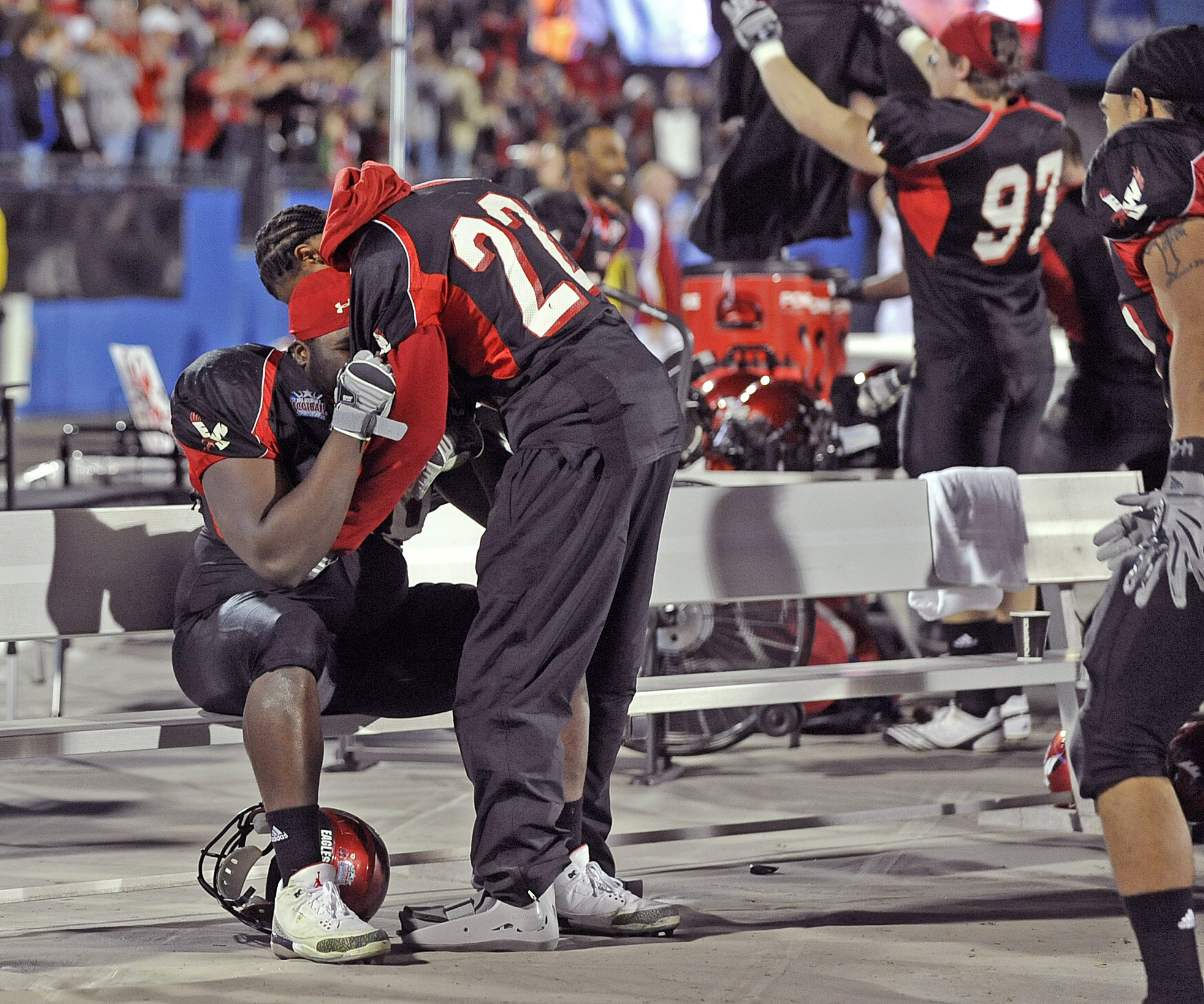 Star running back Taiwan Jones (above) was a cheerleader as Eastern Washington won the FCS championship last weekend. That may have also played a role in his decision to leave school and submit his papers to be eligible for the NFL draft . He was expected to sign with an agent Friday night.