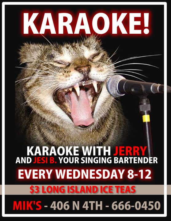 OrangeTV posted this on his Facebook wall, advertising karaoke at Mic & Mac’s every Wednesday night, for those with decent voices or a decent amount of alcohol in the tank.
