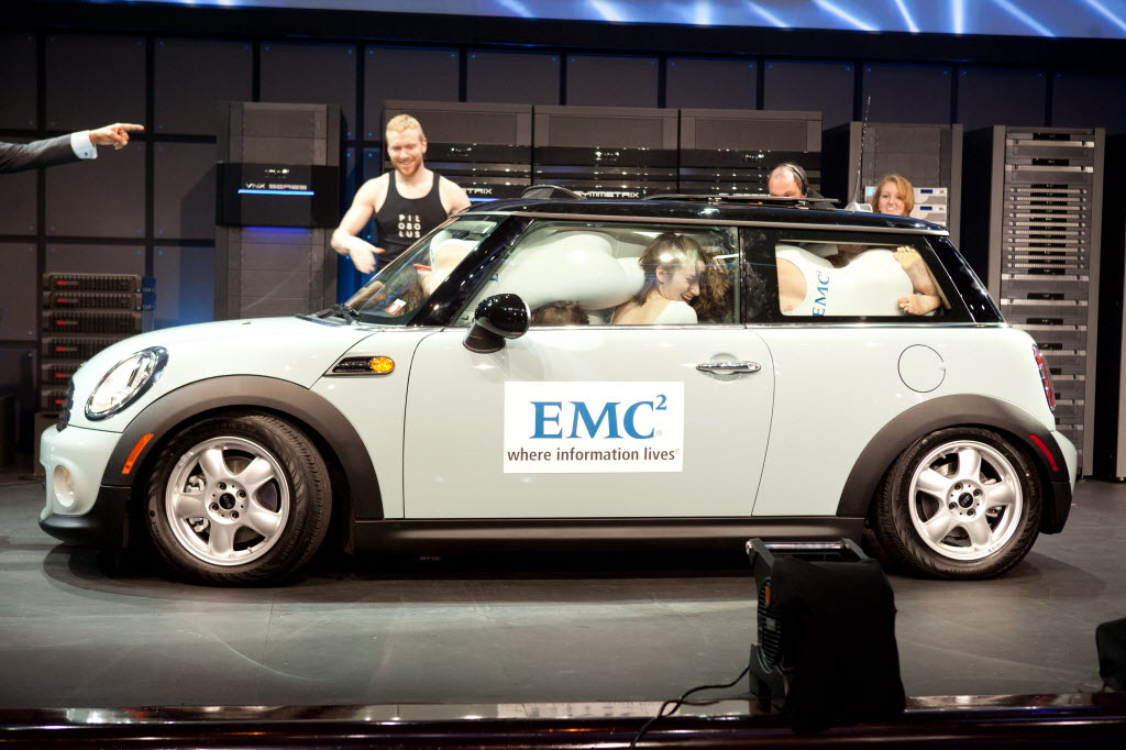 26 Members of the Pilobolus Dance Co. break a world record for people fit in a BMW Mini at the EMC Guinness Record Record Breaking Event at the Equitable Center on Tuesday in New York. You write the cutline. (Matt Peyton/AP Images for EMC)