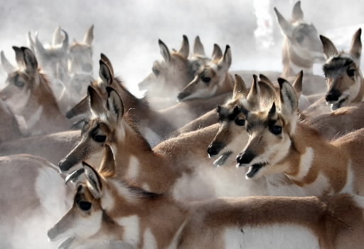 Pronghorns were herded by helicopter in Nevada on Jan. 15 before being netted and captured for transfer to Washington, where 99 of the prairie speedsters were released on the Yakama Indian Reservation. SR story by Rich Landers here . (AP file photo/Deseret Morning News, Tom Smart)