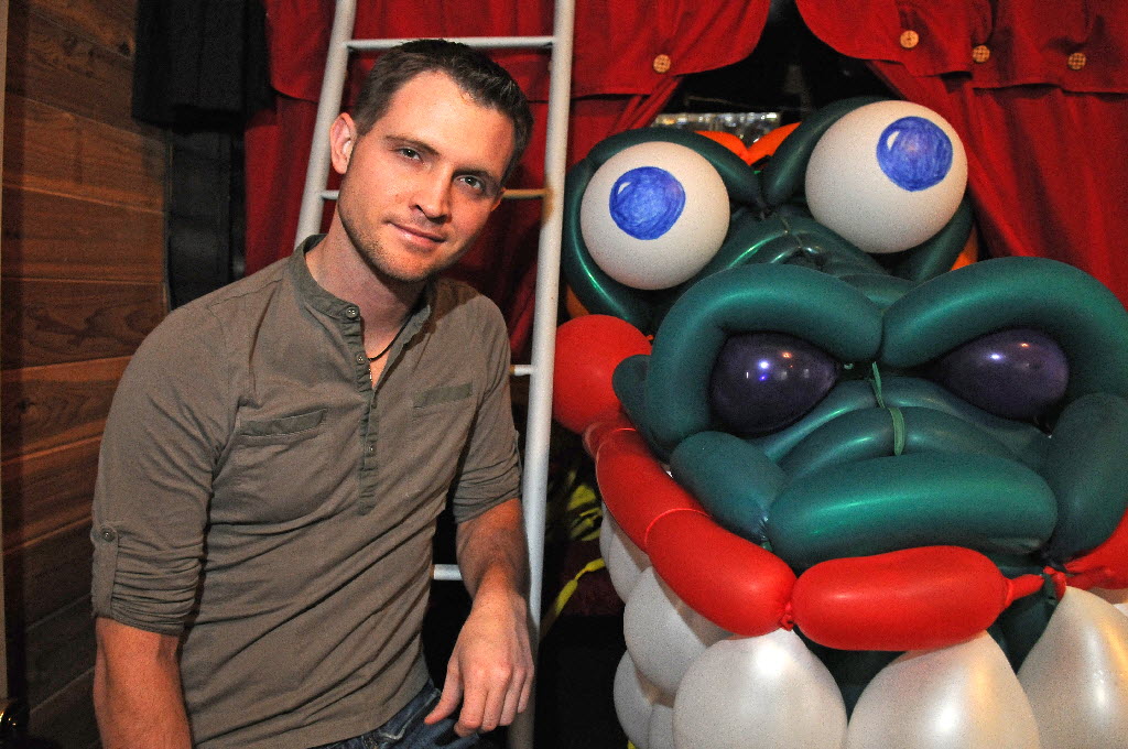 Ryan Oelrich stands by one of his balloon sculptures at his home in Spokane Tuesday. His experience of being wooed via the internet by former mayor Jim West will be part of a documentary project on HBO. Columnist Shawn Vestal visits with the man who didn’t sleep with the late former mayor here . (SR photo: Jesse Tinsley)
