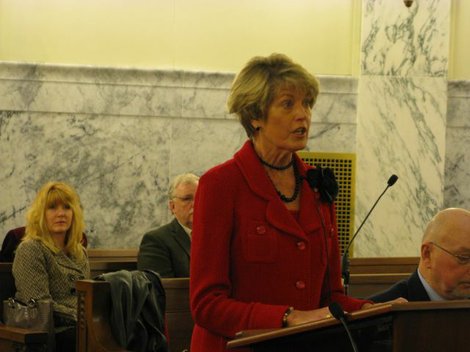 North Idaho College President Priscilla Bell tells legislative budget writers on Wednesday that NIC’s enrollment has soared, but state support for the college would drop down to 2001 levels under the governorÕs proposed budget for 2012, which calls for a further 1.7 percent cut on top of earlier decreases. That forces the college to rely more on local property taxes and student tuition and fees, Bell said. At left is NIC board members Christie Wood and Ken Howard. (SR photo: Betsy Russell)