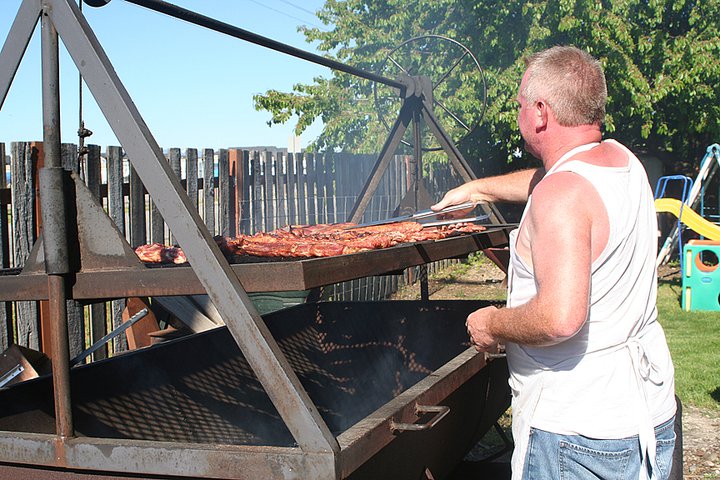 Bent is shown at his grill at the Coeur d’Alene Press reunion barbecue a month ago. I chatted with one of the Press alum afterward who said it’s hard to top Bent’s fare. Why am I telling you this? Bent & his barbecue will be providing an all-you-can eat BBQ ($18 for adults, $12 for children under 13, as well as other items) beginning at 3 p.m. (until the fireworks show) on the 4th of July at the Fort Ground Grill on River Avenue (in historic Fortground area of Coeur d’Alene). You can read about the menu and dinner prices here (or in the ad below by clicking on it). Also, Bent will be providing the BBQ fare for the annual Huckleberries Blogfest at the Fort Ground Grill later this month.