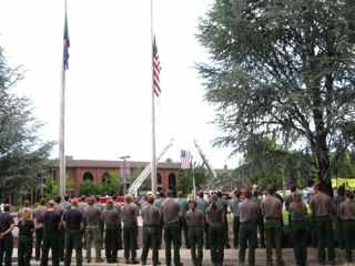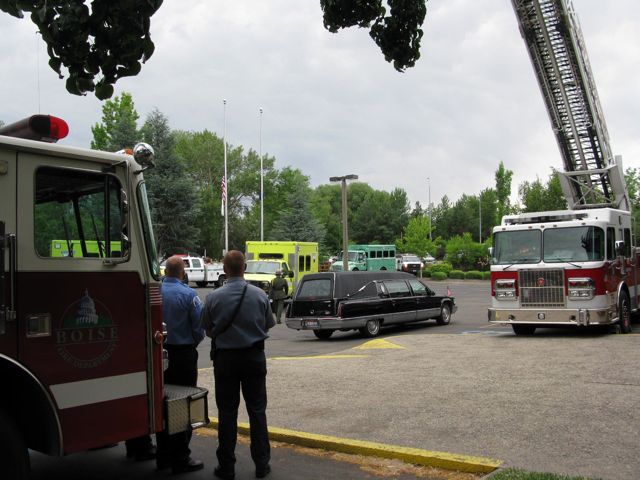 Hundreds of firefighters and dozens of firetrucks, hotshot crew carriers and other fire apparatus accompanied the funeral procession today for fallen Boise firefighter Caleb Hamm, 24, who died July 7 while fighting a fire near Mineral Wells, Texas. His funeral is at 11 a.m. today at the Doubletree Riverside, followed by a private interment; here’s a