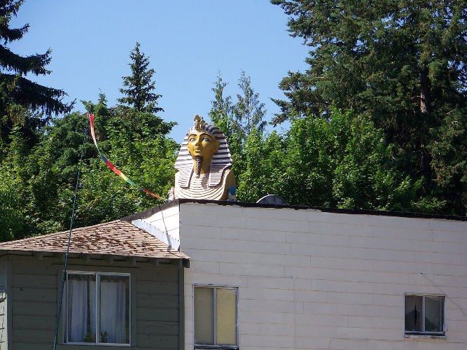 In Bayview, Herb Huseland & Bayview Mercantile owner Scott Bjergo are trying to solve a mystery involving an Egyptian sarcophagus that appeared on the roof of the business Saturday morning. Herb posts in Bay Views that the sarcophagus was “perched majestically on the roof of the building was a bright golden Sphinx.” Herb was amazed that someone was able to scale the building during the night and install the replica “without anyone the wiser.” Then, he points out that Saturday was the 5th wedding anniversary for Bjergo and his wife, Jeanne. You can read Herb’s entire post here.