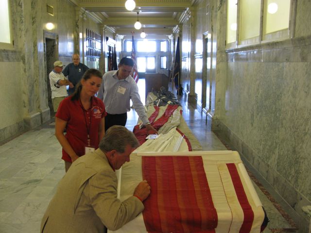 The National 9/11 Flag is on display in Idaho’s state capitol today, where the tattered American flag that was destroyed in the collapse of the World Trade Center 10 years ago is being repaired with a patch from each of the 50 states; today is Idaho’s turn.