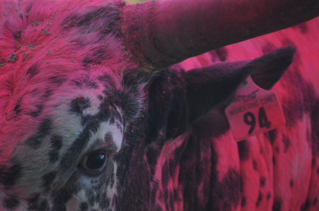 A bull by the name of Wandering Comet sits in a pen behind the Idaho Center arena after being painted pink for Tough Enough For Pink night on Wednesday at the Snake River Stampede Rodeo in Nampa. Idaho Press-Tribune story here. You write the cutline. (AP Photo/Idaho Press-Tribune, Charlie Litchfield)