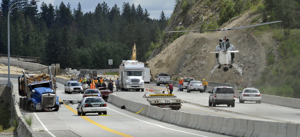 A driver being pursued by Spokane County sheriff’s deputies crashed head-on into a semi-truck and died Monday after driving for about a mile with a flat tire caused by law enforcement spike strips.