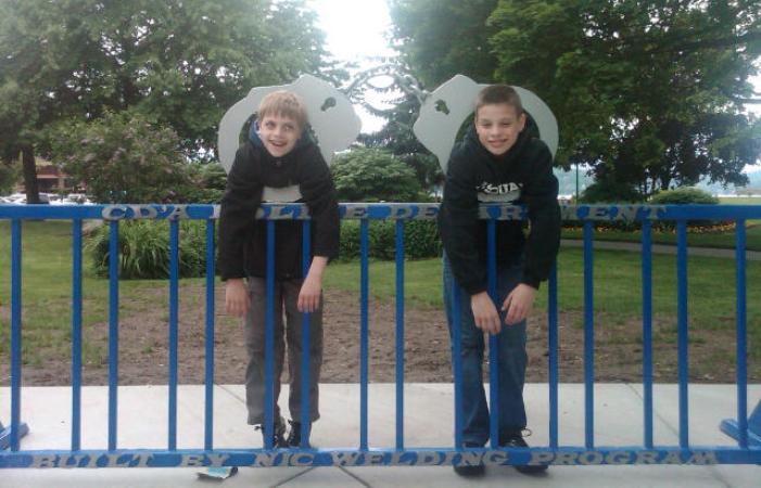 It’s apparent that the handcuffs on the Coeur d’Alene Police Department bike rack will become a favorite near the police substation at City Park. Huckleberries hears that this photo, featuring William Tickman & Chase Helgeson from Issaquah, Wash., is one of several already taken at the bike rack. More info & another photo here. (Coeur d’Alene police photo)