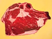 surrounded by his paintings, which hang from the duct work like sides of beef in a meat locker. Two months in a row, now, patrons of Spokane’s First Friday art walk have gazed upon Desmond’s large-scale paintings of raw cuts of meat at local bars, only to find them pulled from the walls by the time the work week rolls around. The first time, in May at Soulful Soups & Spirits, the paintings hung through the weekend, when a bar crowd dominates. By the time of Monday’s lunch rush, however, they were taken down. Owners feared that the paintings would offend their mostly vegetarian customer base/