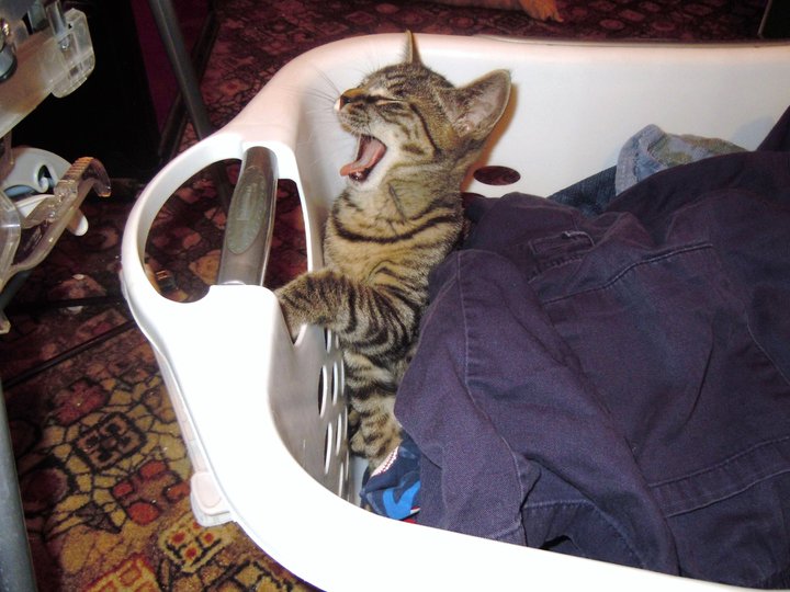 On her Facebook wall, Cindy reports that her new cat, Thor, has the same attitude toward laundry that she has. Cindy continues: “Trish Gannon thinks it’s suspect that I don’t own a pair of ‘sleepy pants.’ Don’t know what she’ll think about my confession that I hate shopping malls, have never seen “Titanic” and loathe the song “My Heart Will Go On.” My Woman Card may be in jeopardy.