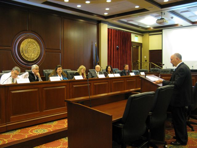 Boise State University political scientist Gary Moncrief briefs the Idaho Citizen Redistricting Commission on the history of redistricting in Idaho on Tuesday. (Betsy Russell)