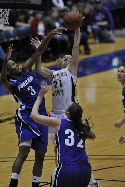 That’s what readers got this morning and I didn’t have any idea how to get the original. Fortunately my boss is much smarter, which is why he’s the boss, and now I can give you the link to the complete women’s basketball notebook and the story on yet one more member from the Class of ‘07 headed home for a final time, Lyndi Seidensticker Montana State out of Lewis and Clark (above in MSU picture).