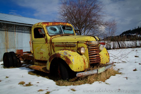 Linda Lantzy, Idaho Scenic Images, snapped this photo of an old pickup in the Rose Lake area. Linda rights on her Facebook page : “The owner said I can come back anytime for some more truck time. Unfortunately, I didn’t have my cow pasture boots on. On the door, very faded, it says ‘Drink Royal Crown.’”