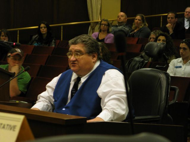 “I could live in a nursing home right now, but I choose to live and work in my community,” James Steed, shown here, told lawmakers. He said he’s on the Aged and Disabled Waiver due to physical disability, but has friends and people he works with who are on the DD waiver. Many have cognitive impairments, he said, and the Aged and Disabled Waiver wouldn’t provide the services they need; they’d end up having to go into institutions, he said.