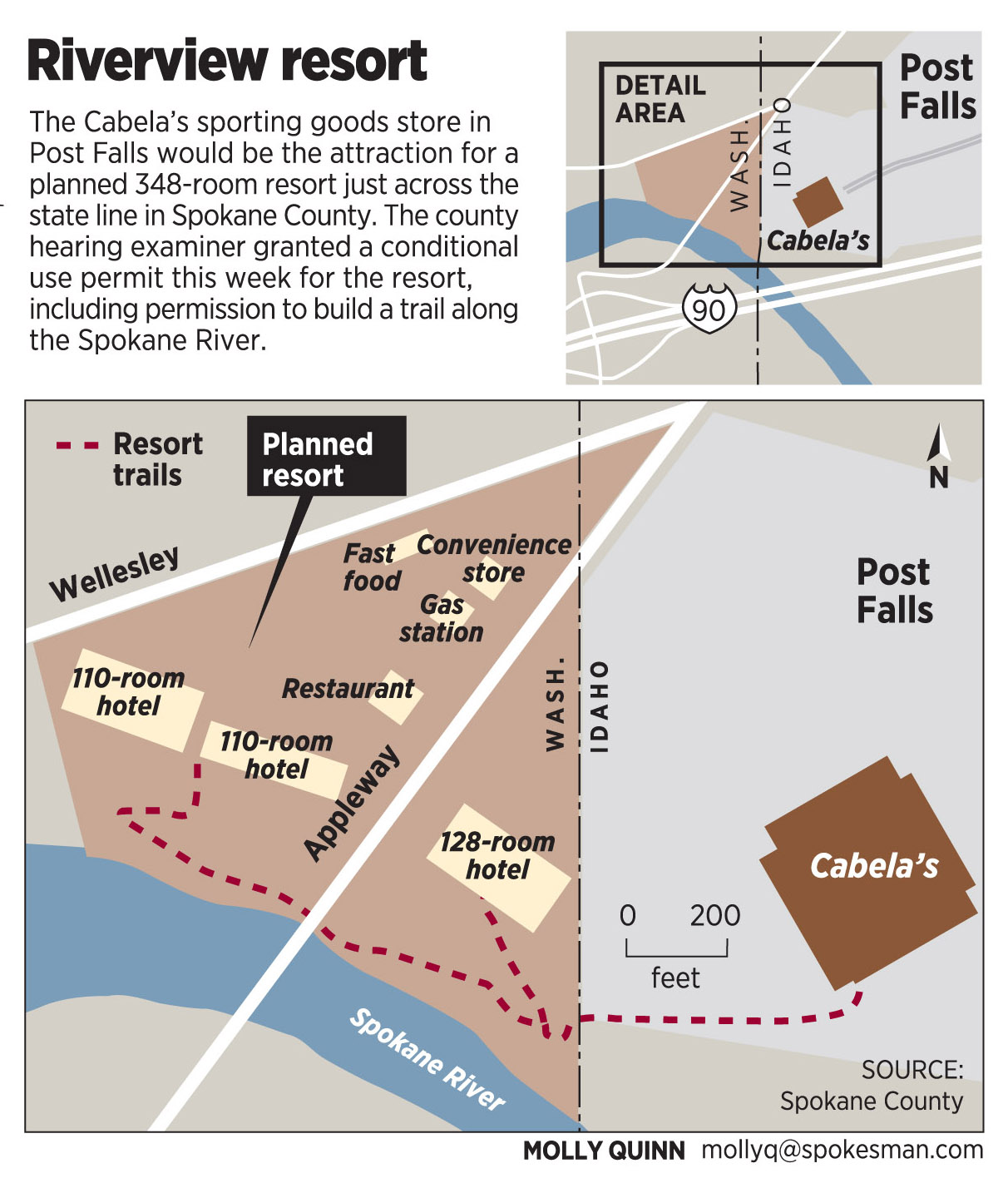Spokane County planners objected to the resort trail because the county Critical Areas Ordinance allows only public trails to run parallel to the river. The resort was entitled only to a private trail, according to Planning Director John Pederson.