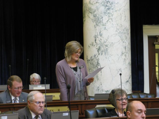 Acting Rep. Sarah Bedke, R-Oakley, filling in for injured husband Scott Bedke, told the House, “My husband is and has been a champion for education reform for the past decade. … He has supported efforts to raise academic standards for students and raise accountability for adults. Many in this body have heard him speak passionately about the benefits of pay for performance. He’s been talking about it for years. And if he was able ,he’d be here today talking about it again.” She said, “On behalf of my husband I urge your green light on SB 1110.”