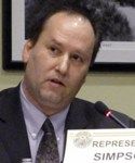 (AP photo of Rep. Erik Simpson listening to debate on his bill.)