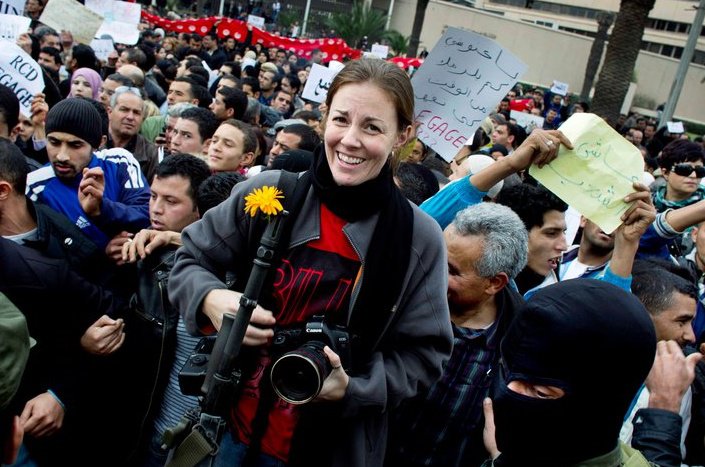 Above, you see former Spokesman-Review photographer Holly Pickett at the Jasmine Revolution in Tunisia. I’m going to provide a link of Holly literally running for her life with two of the four New York Times reporters/photojournalists who have been reported missing in Libya here. Holly reported on her Facebook wall that she’s all right. Journalism isn’t all fun & games, as you can see.