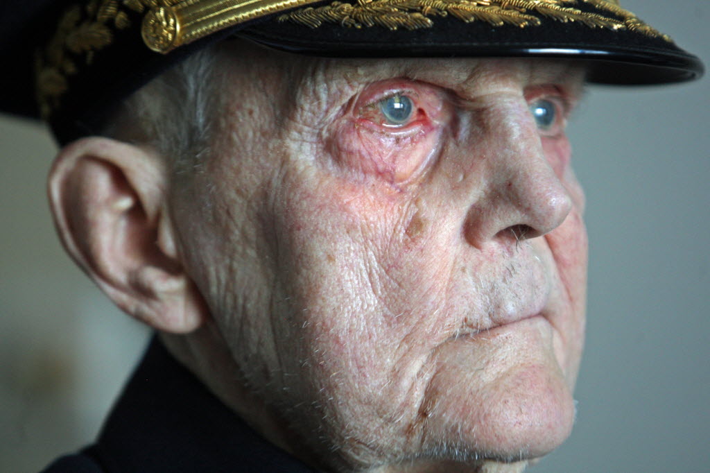 In this Jan. 19 file photo, 99-year-old Brigadier Gen. Mayhew “Bo” Foster, in his dress blues, speaks to the AP at his nursing home in Missoula, Mont. Foster, a retired brigadier general of the Montana National Guard who flew captured Nazi leader Hermann Goering into Allied hands at the end of World War II, has died at 99. Missoulian story here . (AP Photo/Mike Albans, File)