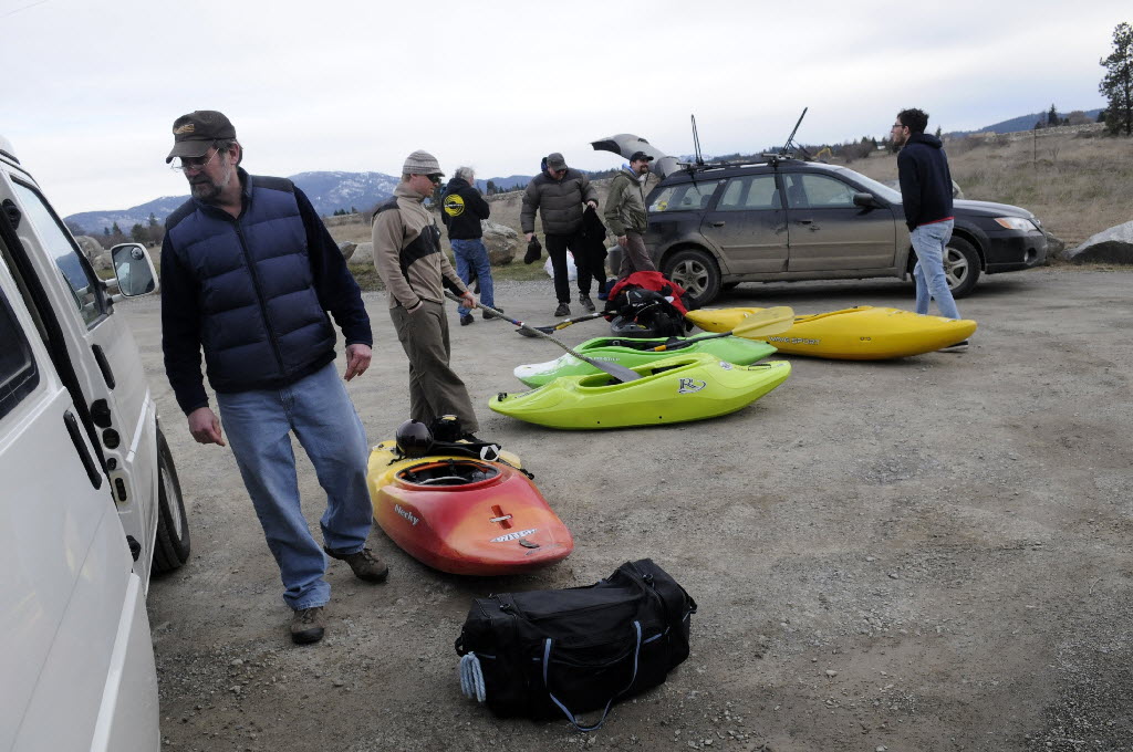 RIVERS — Members of the Spokane Canoe and Kayak Club , pictured above unloading their boats at the popular Spokane River Centennial Trail access at Mission and Flora on Sunday, are working to assure that the access won’t be gobbled up by development plans.