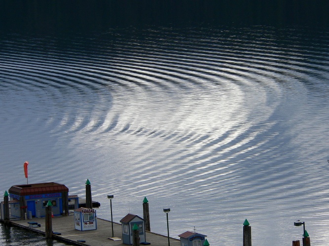 Don Sausser reports: “These interesting surface patterns occur frequently when volumes of water with differing in temperatures meet.” Don snapped the photo of the north shore, b/n the Coeur d’Alene Resort and City Beach, on Saturday.