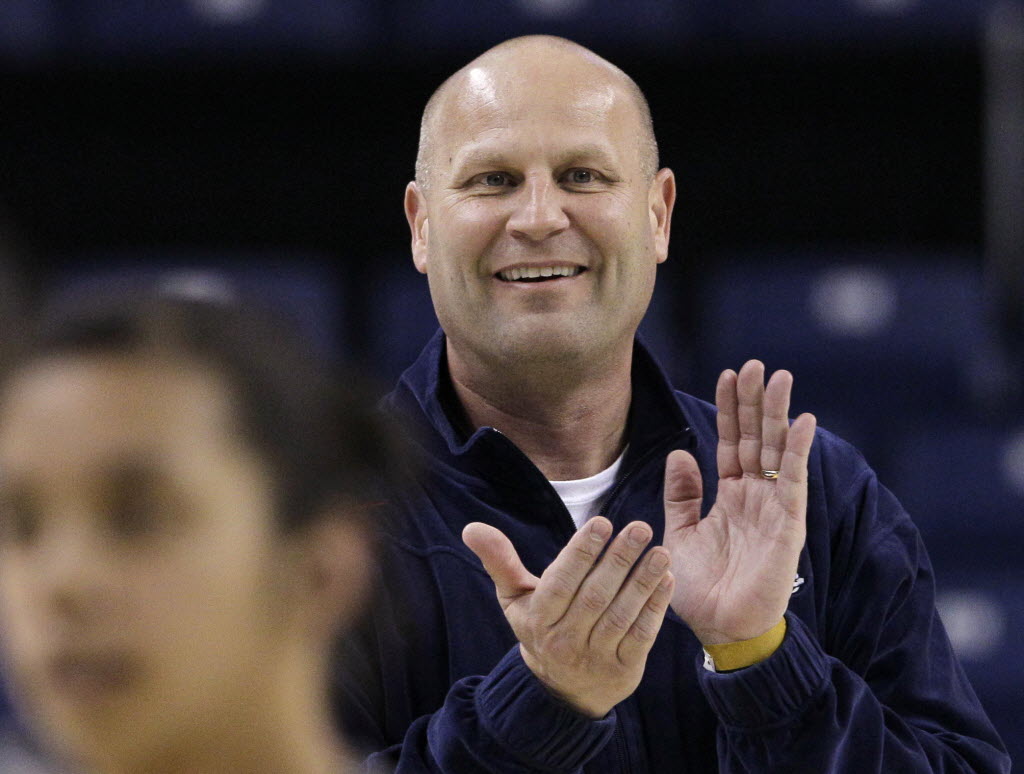 Gonzaga coach Kelly Graves applauds his team during practice in the first round of the NCAA women’s college basketball tournament, in Spokane, Wash. After a brief discussion about the head coaching job at Washington, Graves has decided to remain at Gonzaga, he said today. See Dave Trimmer’s story here . (AP Photo/Elaine Thompson, File)