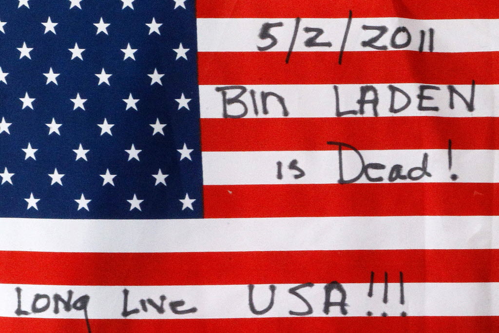 This is a flag placed at the temporary memorial to United Flight 93 in Shanksville, Pa., this morning. Osama bin Laden, the face of global terrorism and architect of the Sept. 11, 2001, attacks, was killed in a firefight with elite American forces in Pakistan, then quickly buried at sea. (AP Photo/Gene J. Puskar)