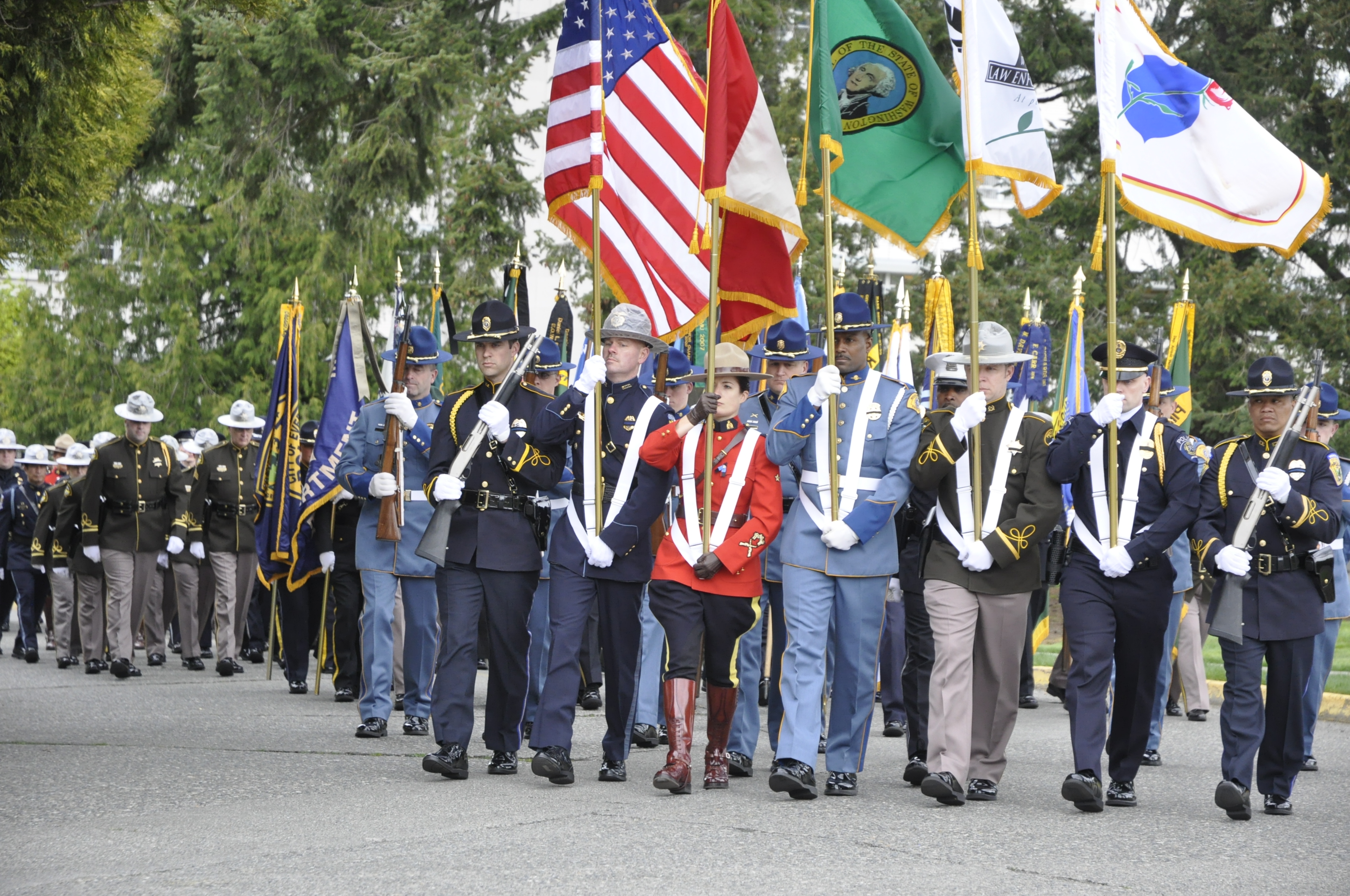 The annual ceremony, held at the monument that overlooks Capitol Lake and Budd Bay beyond, is a somber event that honors officers killed on duty. “Recent years in the state of Washington have been especially difficult,” said Gov. Chris Gregoire, who placed a wreath in front of the monument that carries the names of all slain officers since territorial days. “There have been far too many losses.”