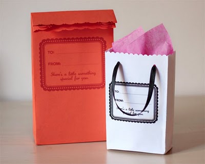 I first saw small favor/gift bags on How About Orange (one of my favorite craft/design blogs). I’ve seen them posted on other sites online, but these remain as my favorites. They are clean and un-fussy. I plan on making a bunch of them in one sitting to have on hand for any small wrapping emergency.