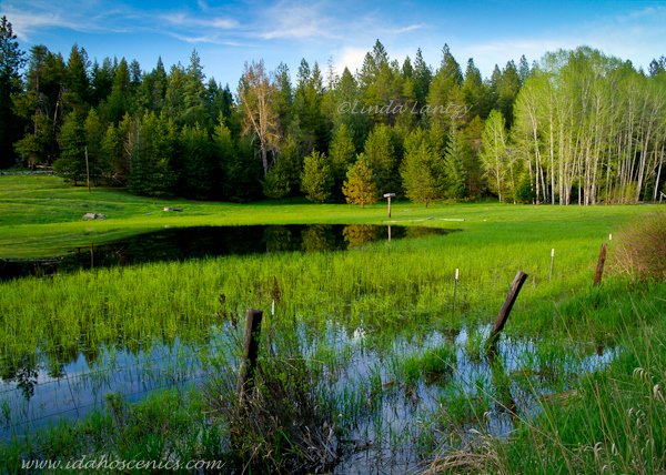 On her Facebook wall, Linda Lantzy/ Idaho Scenic Images writes of this scenic from the Sagle area: “Reflections of a flowering tree in this partially flooded pasture near Sagle, got me to pull over, but I ended up liking this other view better. Tuesday evening.”