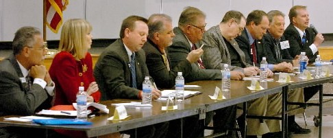 At a congressional forum in 2006 in Post Falls ( from left): Robert Vasquez, Sheila Sorensen, Norm Semanko, Bill Sali, Dave Olson, Cecil Kelly, Keith Johnson, Andy Hedden-Nicely and Skip Brandt. Larry Grant missed to forum. (SR file photo: Jesse Tinsley)