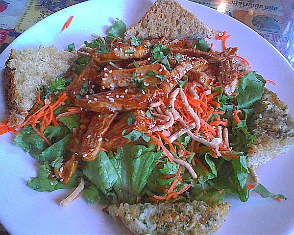 On the Get Out! North Idaho Facebook wall, OrangeTV posts this appealing photo of a Thai Peanut Salad at Capones, which he ate for a pre-Halloween lunch.